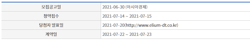 기타 자세한 모집공고문 내용은 사업주체 홈페이지(http://www.elium-dt.co.kr) 및 신문공고내용을 참고하시기 바랍니다.