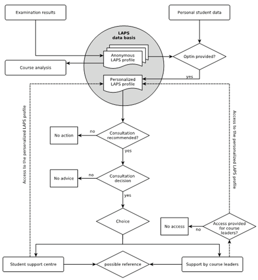 교사를 위한 학습분석, 학생의 학습효율을 높이는 The LAPS (Learning analytics for exams and study success) project는 아래 그림과 같이 진행