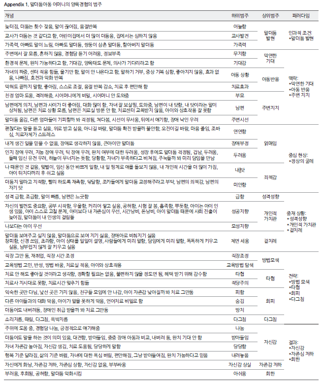 말더듬아동 어머니의 양육경험의 개념 범주화