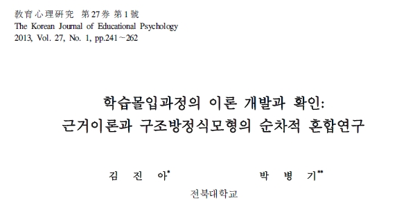 김진아, 박병기 (2013). 학습몰입과정의 이론 개발과 확인. 교육심리연구, 27(1), 241-262